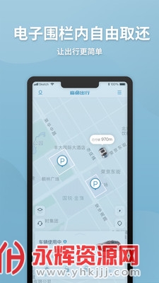 地图找车,打开地图可以搜索附近的空闲汽车与寻找还车电子围栏