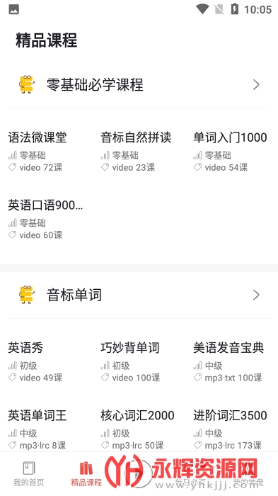 英语口语8000句是一款专业的英语口语学习软件,软件上有着海量的视频课程,涵盖了众多的知识内容,包含了语法课程、考试英语和工作旅游等等,可以满足用户们的各种需求,如果您是0基础入门也不用担心,软件上也有着详细的零基础必学课程,帮助大家从零开始学习,轻松快速的掌握英语!欢迎感兴趣的朋友们前来永辉资源网下载!