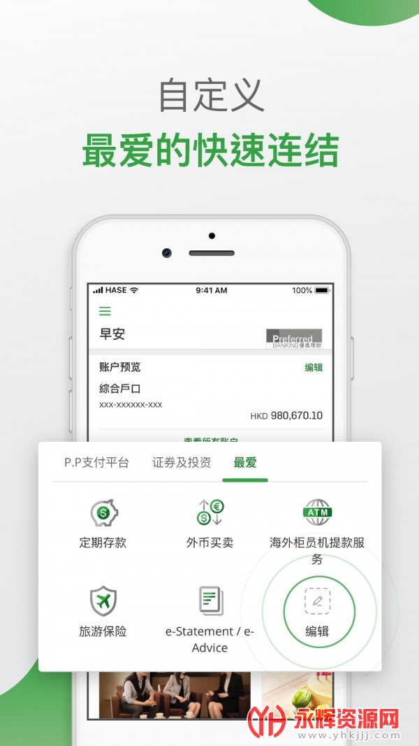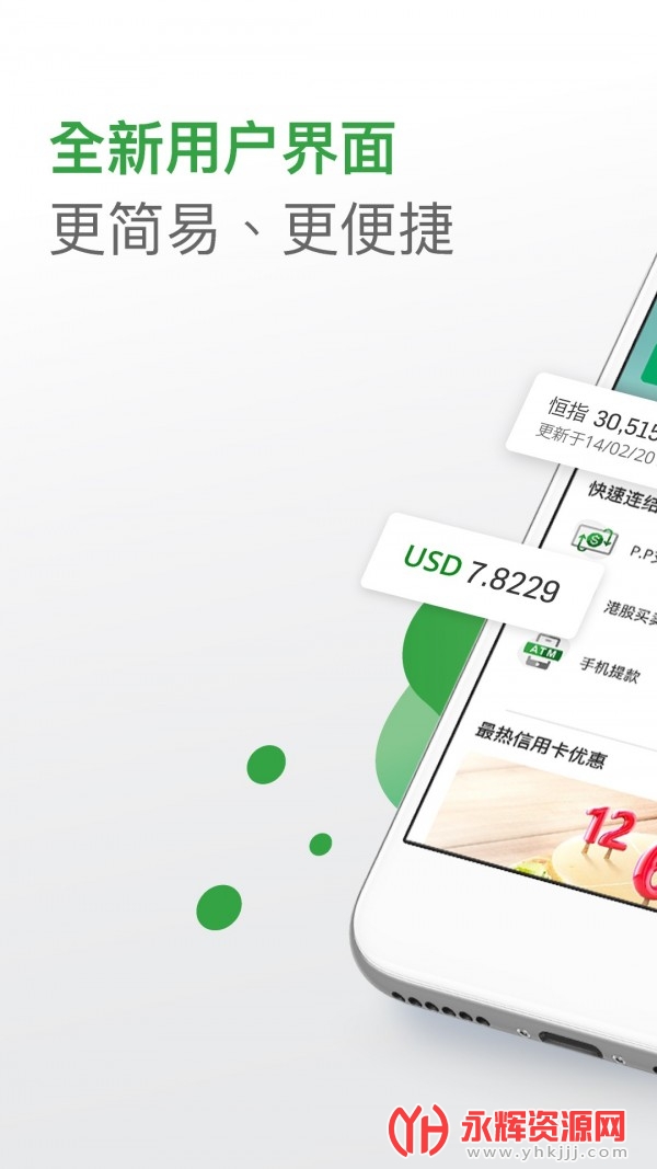 提供崭新用户体验 - 全新用户界面,使用快速连结,即时进入精选功能,透过账户预览快速查阅户口结馀