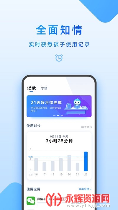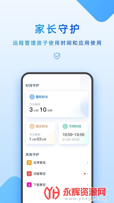 1.应用管控:可管控孩子下载应用、已安装应用是否允许使用、娱乐应用时长时间。