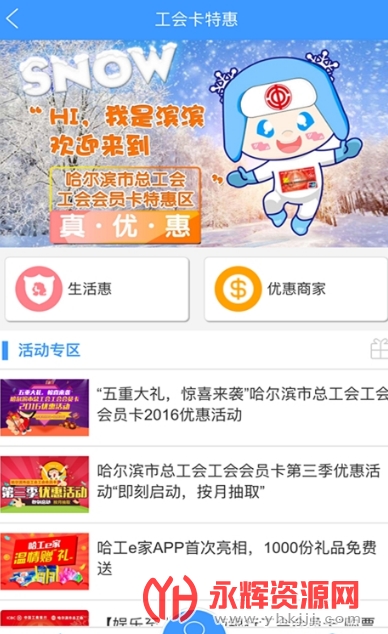 哈工e家APP上设置了工会会员卡的查询办理版块,职工求职招聘,单身职工婚恋交友,会员卡普惠商城等一系列职工普惠服务。