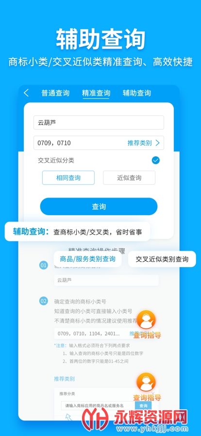 商标查询注册app是能帮你查询商标注册的应用软件,使用这款软件就可以避免你在注册商标时候重复的烦恼,有需要的朋友们欢迎来永辉资源网下载哦!
