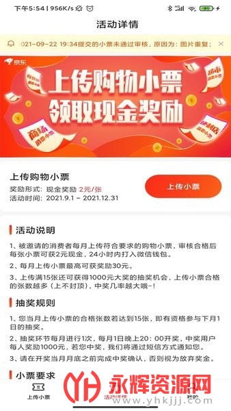 当月上传合格的小票张数若达到15张,即有资格参与下月1日的抽奖。