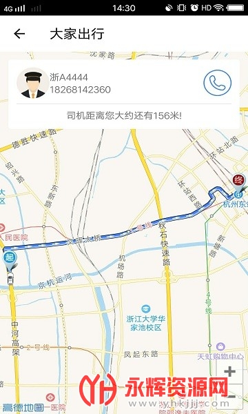 叫车成功后,叫车页面显示司机车牌号码,乘客可点击拨号标志联系司机。若在等待中途,想取消用车,可点击叫车等待页面的“取消叫车”,点击“取消用车”提示框的“确定取消”,即取消用车。