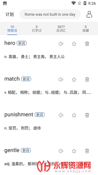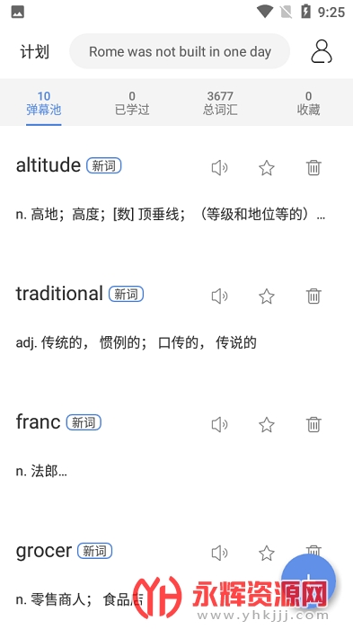 弹幕记忆app是一款非常好用的英语背单词软件,这款软件上有着海量的词库,包含了中考/高考英语词汇、考研英语词汇和四六级英语词汇等等,可以满足用户们的各种学习需求!并且还可以设置成弹幕,在看视频的时候也能够记忆学习,快速的掌握更多的词汇,提高英语学习成绩!欢迎感兴趣的朋友们前来永辉资源网下载!