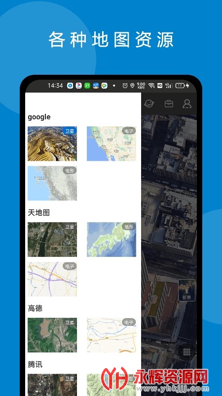 1:拥有谷歌、高德、天地图、Arcgis、腾讯等多种地图样式,包含卫星、地形、电子地图等。
