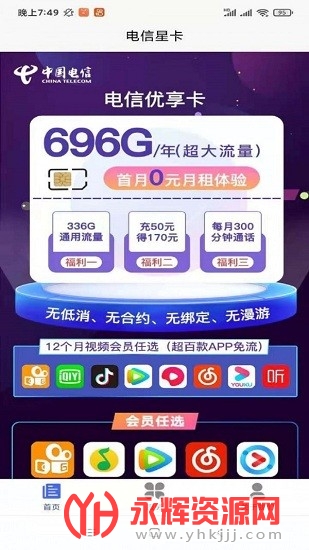 电信星卡申请入口中为大家提供了号卡服务和流量服务等,是一款非常好用的电信流量套餐在线办理软件,软件中有一系列的不同的优惠流量套餐,用户们可以根据自己的需求进行选择,套餐可以轻松的在手机上进行修改,还能及时的查看流量等。