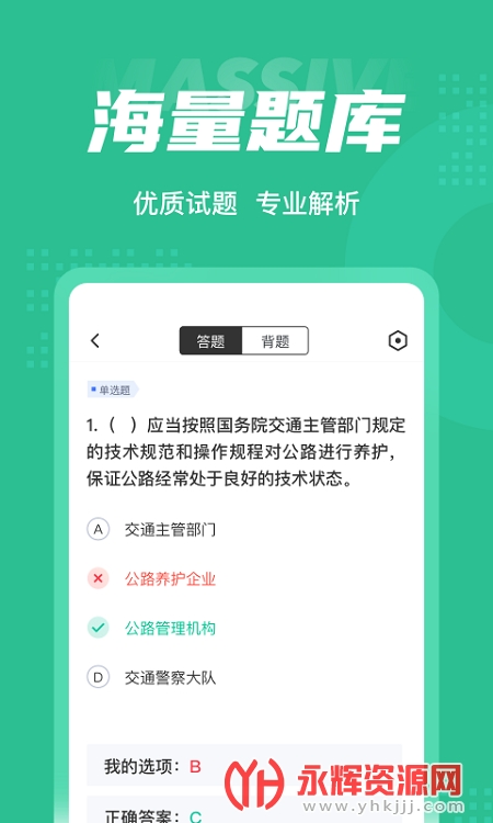 公路养护高级工题库app是一款为想从事公路养护的朋友们提供的学习刷题软件,软件中有着超多真实题库提供给大家进行学习,有需要的朋友们可以来永辉资源网下载使用哦!