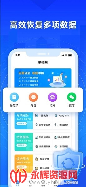 果师兄恢复大师免费版是一款非常不错的手机优化辅助工具软件,软件可以帮助用户来恢复被自己不小心删除掉的各种数据文件,包含了照片,文件,视频等等各种类型的资料,特别的方便实用,有需要的朋友就快来永辉鞋子体验吧!