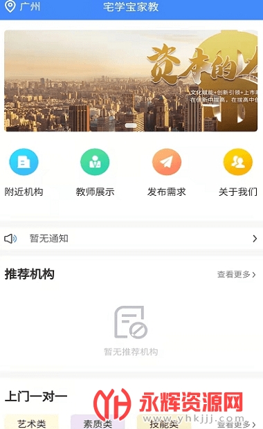 在软件中,有各类实用的日常学习内容,包括但不限于附近机构查询,教师展示,对于有教师资源在线发布功能使用需求的用户,也可以在软件中完成。