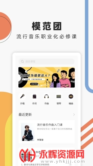 音乐人星球app是为广大朋友们打造的音乐学习平台,软件中有着超多音乐人你可以与他们进行交流,还有着许多优质的课程提供给大家进行学习,还在等什么呢?快来永辉资源网下载吧!