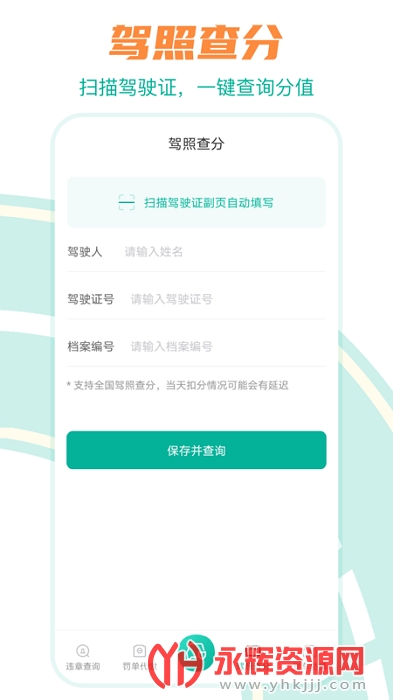 驾照查分:扫描驾驶证,一键查询分值。