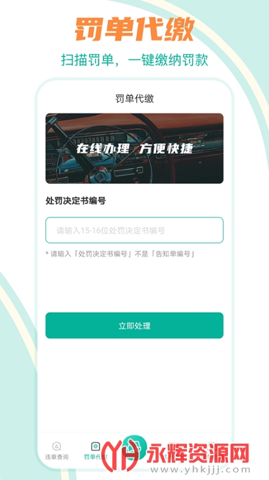 罚单代缴:扫描罚单,一键缴纳罚款。