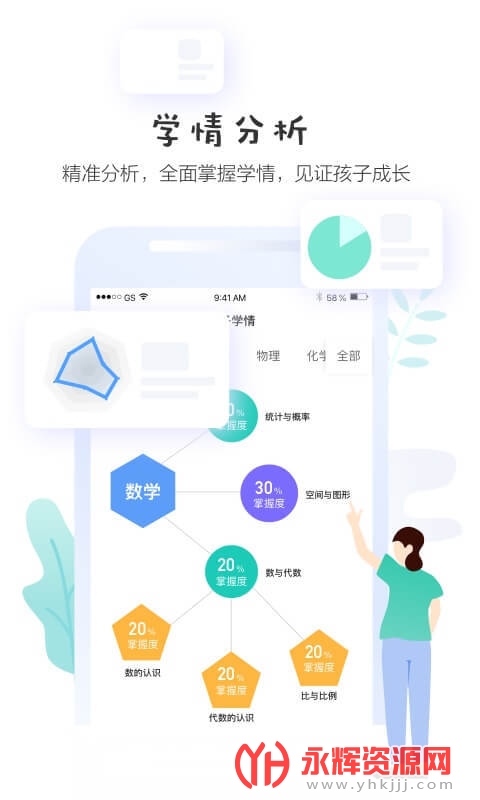 通过手机客户端,学生或教师可以清楚直观地发现学生在某些知识板块或能力层次上的差距,明确学业的障碍点和增长点;