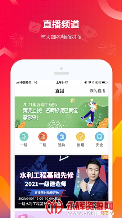 建设工程教育app一款全新为广大用户带来的教育行业移动服务平台,用户通过这款软件就可以快速买卖到自己喜欢商品,有着海量课程,想学习的朋友赶快前来永辉资源网下载体验一番吧!