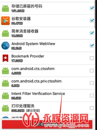 3、用户可以自由的选择你想要卸载的系统应用程序