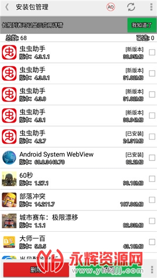 4.“删除重复包”功能,可一键扫描SD卡上所有的重复包,一键删除;