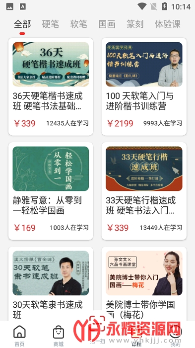 配套课程能够在此找到,可以在线学习书法的视频课程。