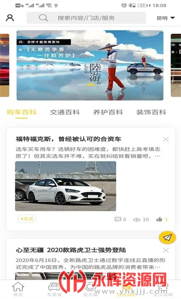 云车宝app整合配件、金融、保险、洗护、维修、加油站、汽车代办、网约出行、车辆咨询、社交、百科、汽车商城等产业资源。