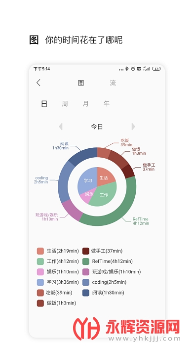 这是一款记录在生活中各项活动上时间花费的应用,愿景是帮助你建立起时间流逝的意识感,通过数字量化的方式帮助你更好地评估,调整自己的生活。