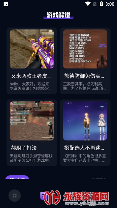 一元游戏攻略app专为广大游戏玩家打造,这里有着海量的游戏攻略和游戏资讯,包含了各种热门游戏,如英雄联盟、魔兽世界和穿越火线等等,各种游戏视频解说,攻略合集应有尽有,帮助大家轻松掌握最新的游戏资讯和最强的游戏攻略,让你秒变游戏大神!欢迎感兴趣的朋友们前来永辉资源网下载!