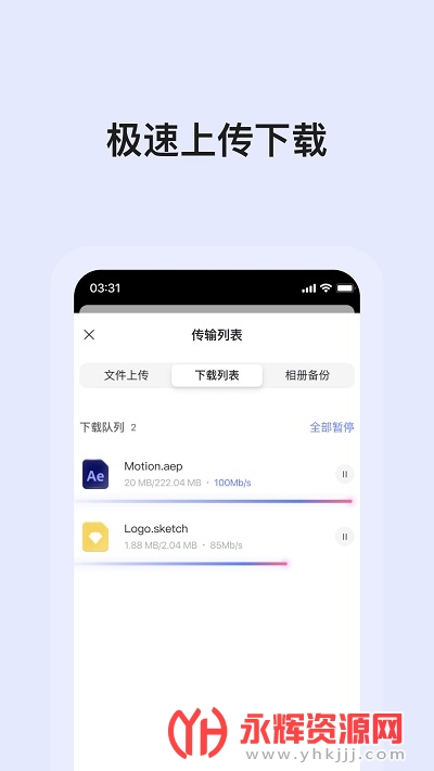 2、视频、文件、图片轻松存,还能随时下载,不限速;