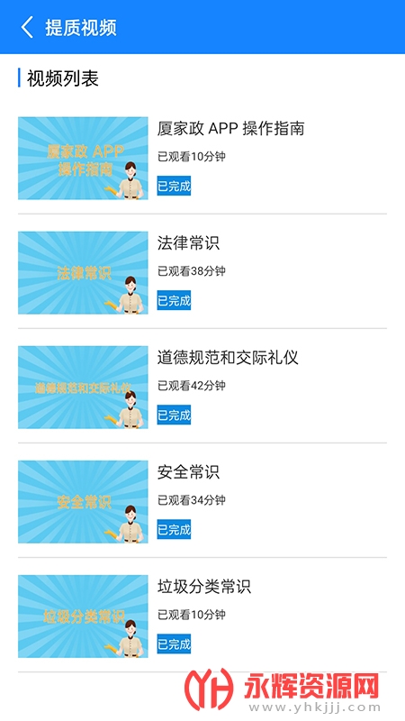 厦家政官方app是一款非常优质的家政服务平台,软件中有着许多优质的家政服务教学课程,提供给大家可以在这里免费学习,有需要的朋友们可以来永辉资源网下载哦!