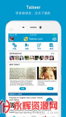 talkeer app外语学习互助社区。大家相互学习,交朋友。在这里,大家可以更好的学习外语,一起探讨,一起学习。