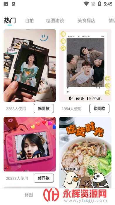 糖图专为广大年轻人打造,是一款非常好用的修图编辑软件,软件的功能十分丰富,包含了修图,美化和人像抠图等等,可以帮助用户们轻松的编辑各种图片,并且软件上还有着丰富的素材,大家可以任意的挑选使用!一键制作出各种精彩的图片内容!欢迎感兴趣的朋友们前来永辉资源网下载!