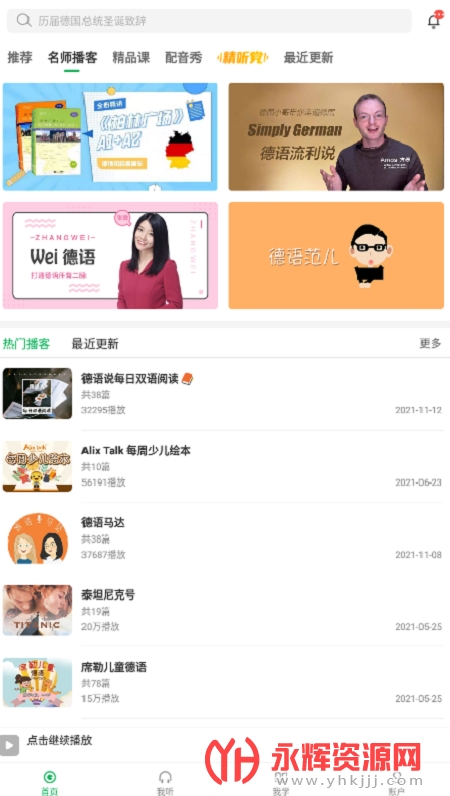 每日德语听力最新版本是为想学习德语的朋友们提供的应用软件,使用这款软件可以给你的德语学习提供非常大的帮助,有需要的朋友们欢迎来永辉资源网下载使用哦!