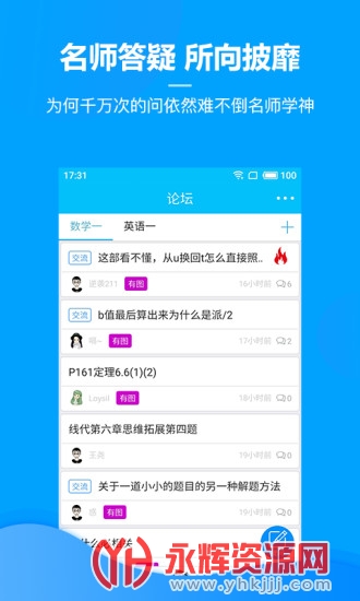 我们拥有app内置考研论坛学生可以交流复习经验讨论疑难题,专家级老师在论坛帮助解答疑难。