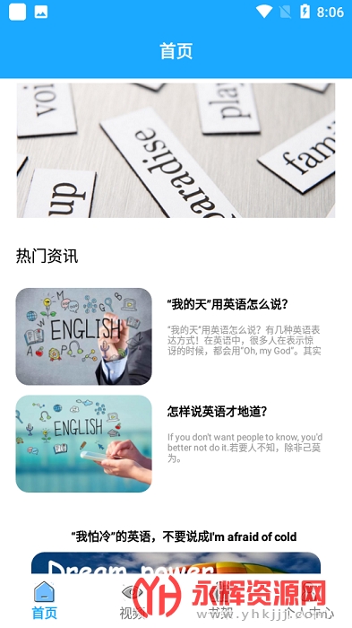 恋恋有词app是一款非常好用的英语阅读学习软件,这款软件上有着丰富的学习资源,涵盖了各种类型的知识点,还有着最新热门的资讯,和有趣生动的视频教学,帮助大家更好的理解学习,能够快速的掌握知识点,提高英语学习成绩!感兴趣的朋友们就来下载体验吧!