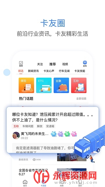 车辆管理、路况分享、发货配货、招聘找车、周边加油站、精彩活动,等待您的发现!