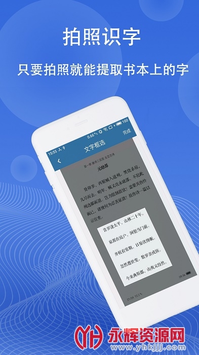 选择或者拍一张带有文字的照片,选取需要扫描识别区域,文本就会立刻识别呈现。