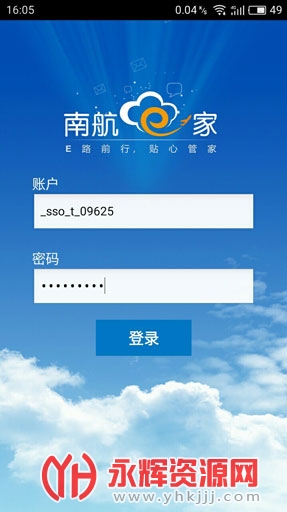 5.安装完成后从您手机的应用抽屉中找到已安装的南航E家,点击打开南航E家,输入登录帐号和密码后您就可 以畅享南航E家给您带来的云端通讯体验了;