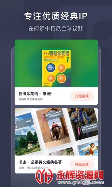 有专业的新概念的英语专业课程,以及各种的知名英文原著,可以让用户在阅读中拓展自己的全球范围视野。