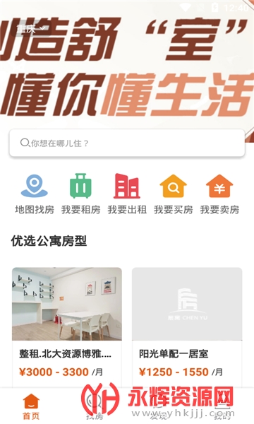 辰寓app是一款十分可靠的房产综合服务软件,软件中有着海量优质房源提供给大家,你可以查看房源进行租赁,有想卖房的朋友也可以通过此软件哦,对这款软件感兴趣的朋友们快来永辉资源网下载吧!
