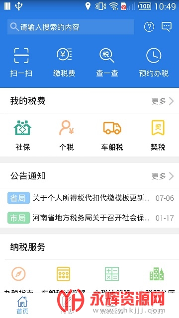 公众服务:突破计算机等硬件条件的限制,您可实时关注税务机关的最新动态,了解最新通知公告,使用征期日历获得涉税提醒,同时与其他征纳沟通渠道进行互动,即时进行咨询室预约和培训报名。