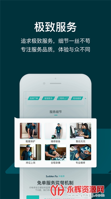 闪电修app是一款十分可靠的手机维修平台,当你手机出现问题时候可以预约专业的师傅为您上门维修手机,价格也是比较亲民的,有需要的朋友们可以来永辉资源网下载使用哦!