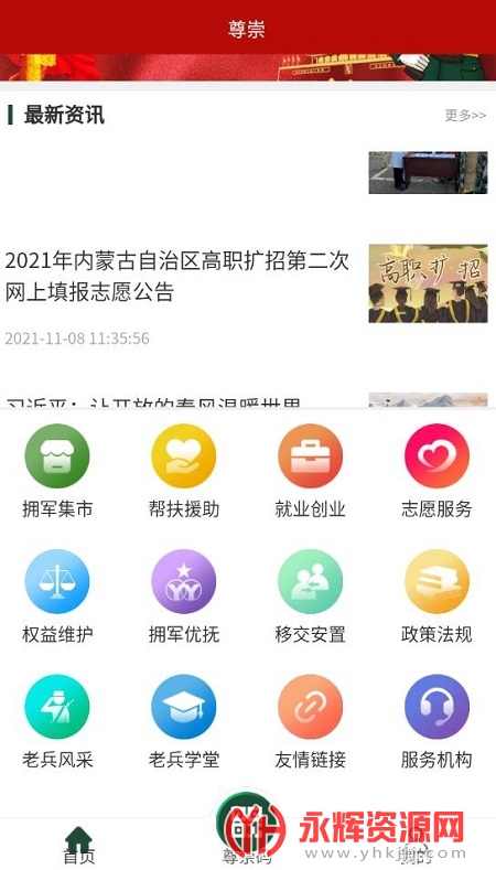 退役军人app是为广大退役军人朋友们提供的综合服务软件,使用这款软件可以为你提供许多帮助,例如就业创业、志愿服务、权益维护、帮扶援助等一系列功能,欢迎有需要的朋友们来永辉资源网下载使用哦!