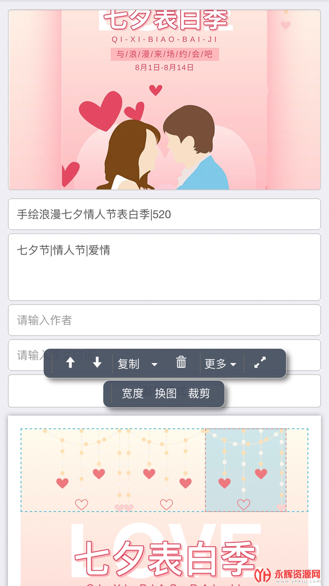 在手机上排版,目前还不能像在电脑网页版上,自由定义布局,只能通过样刊模板的方式,来使用现有的布局。