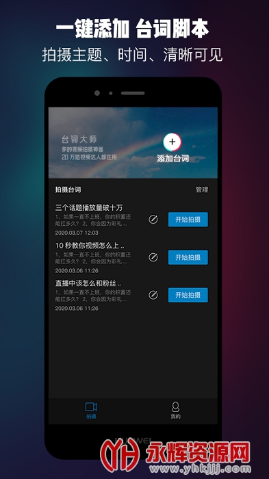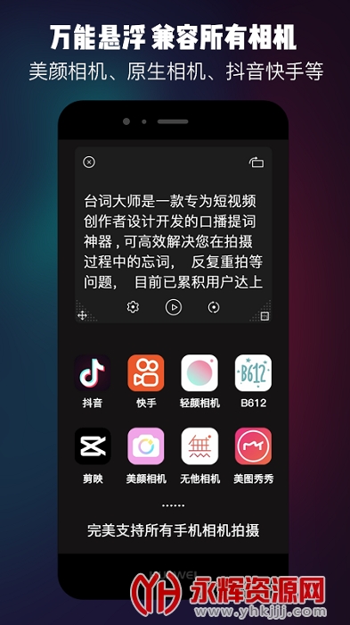 提词器台词大师是一款专为广大视频创作者打造的提词软件,帮助用户们快速的想起台词,解决在视频直播时会忘词的难题!帮助大家更好的进行视频直播创作,能够高效的完成视频拍摄!欢迎有需要的朋友们前来永辉资源网下载!