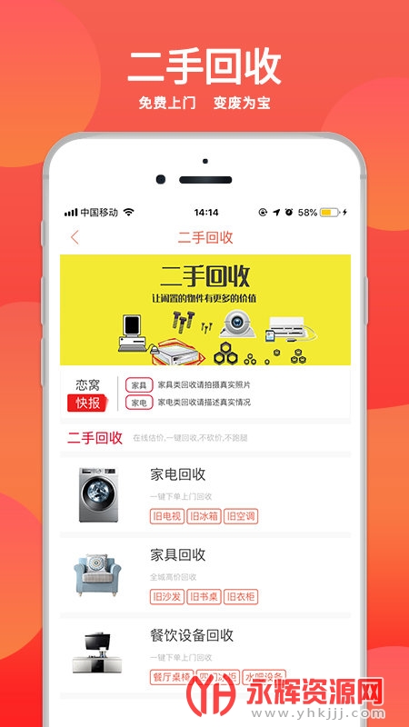 二手回收:旧家具回收、旧家电回收、废旧物品回收