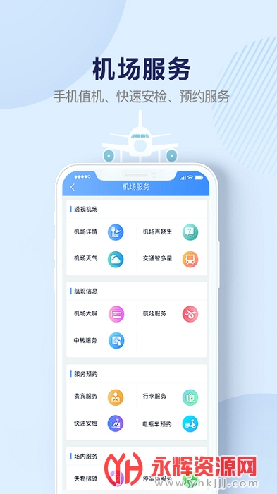 机场行APP,提供旅客行程自动导入、实时查询航班动态、手机值机、智能行程助手等出行工具,提供全国机场中转、航延、问询、导航、行李运输、机场交通、贵宾服务、快速安检、电瓶车、停车等全流程机场服务及机场餐饮、休闲、购物电商平台。
