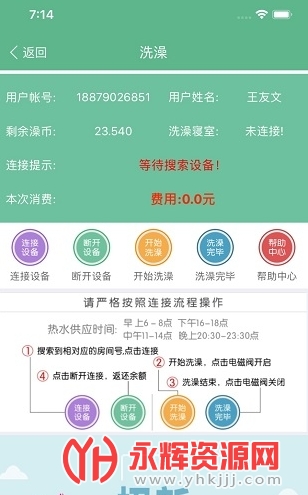 通过的软件来与学校的洗澡设备进行连接,控制热水的开关;