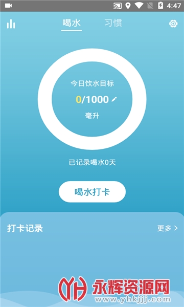 科学饮水打卡app是能让你养成良好喝水习惯的应用软件,这款软件可以每日督促你进行健康饮水,关注你的健康。有需要的朋友们快来永辉资源网下载哦!