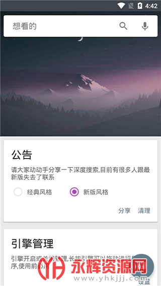 深度搜索4.8版是非常火爆的手机搜索引擎,在这款软件中你可以轻松搜索到超多自己感兴趣的内容,喜欢听的歌曲以及演唱会的视频等等都是可以免费下载的。对这款软件感兴趣的朋友们快来永辉资源网下载吧!
