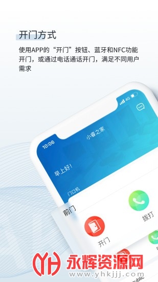 使用APP的“开门”按钮、蓝牙功能开门,或通过电话通话开门,满足不同用户需求