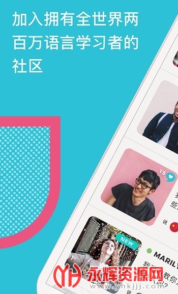 1.拥有由来自全球各地的三百万名外语学习者构成的独特社区。