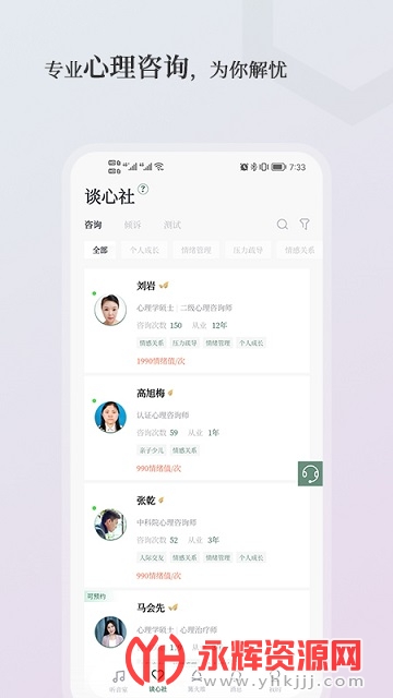 小情绪app是一款专注于心理健康的手机工具软件,用户们可以在软件中进行心理健康测试,并且平台上拥有很多心理咨询导师在线为用户解答各方面的疑问,同时进行心理愈疗,有需要的朋友就快来永辉下载体验吧!
